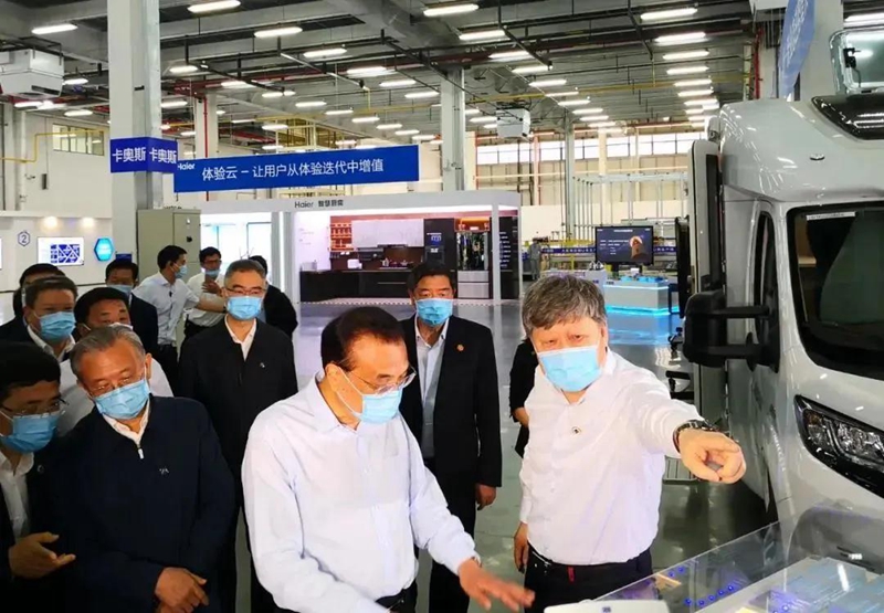 ▲6月2日,李克强总理到海尔视察,听到了海尔工业互联网平台COSMOPLAT的介绍。该平台的综合能源管理部分由云南法尚智家工程有限公司提供。